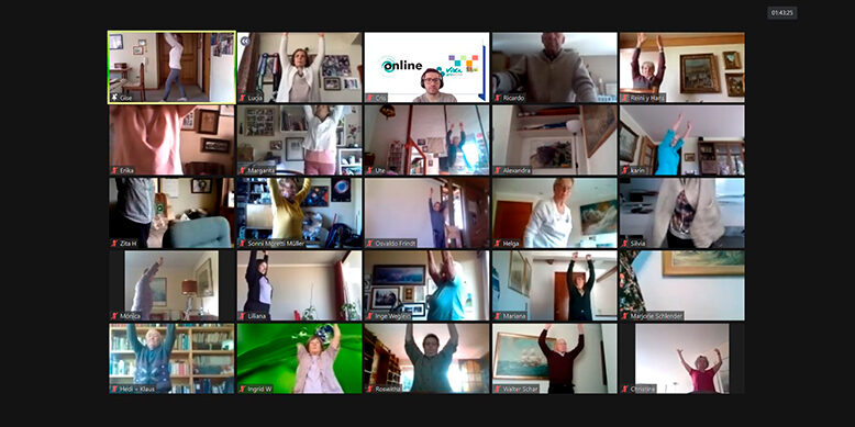 Es así que desde el 16 de marzo realizamos talleres vía Zoom los días martes, miércoles y jueves, con una duración de dos horas y media, en que nuestros socios mayores de 65 años pueden ejercitarse y socializar.